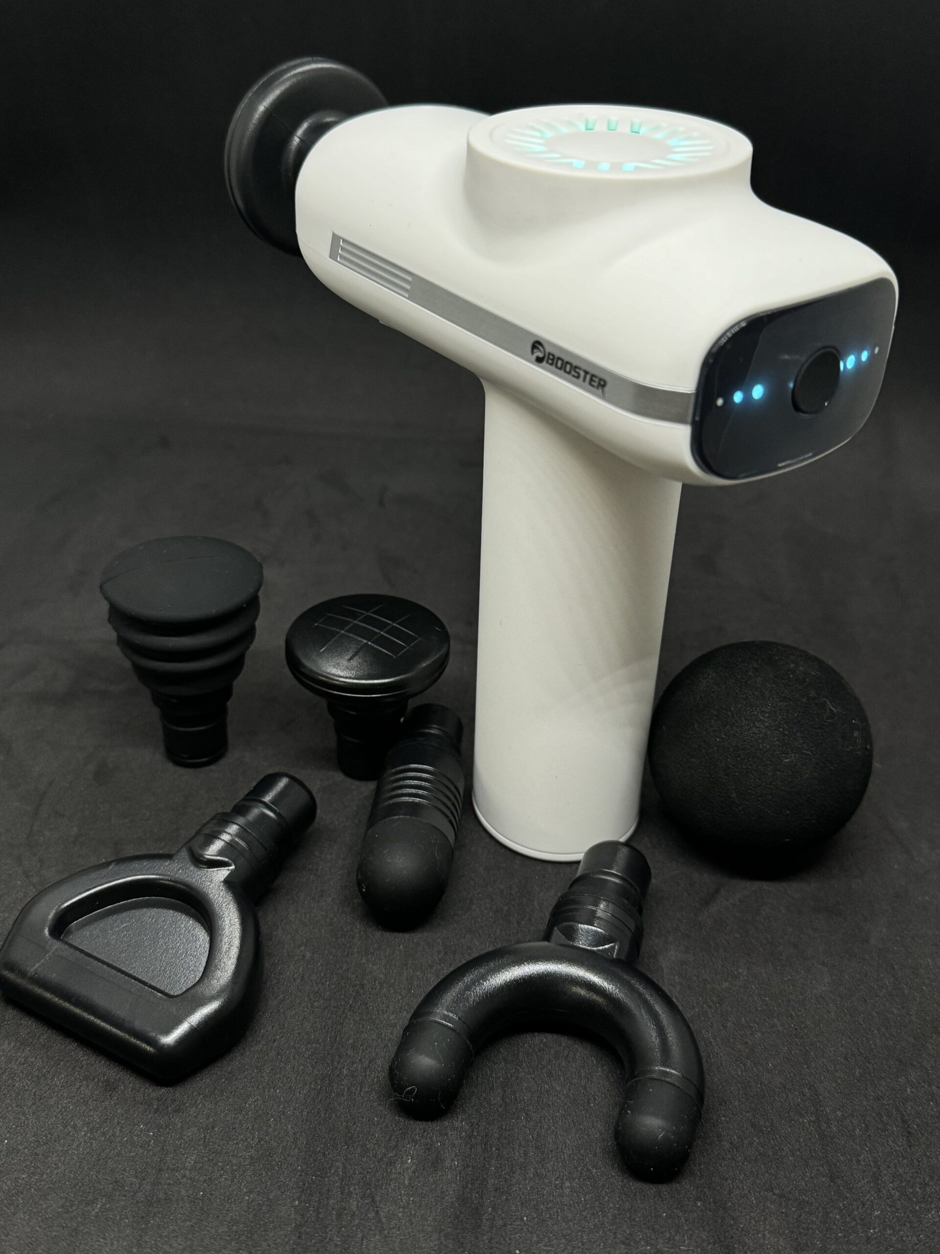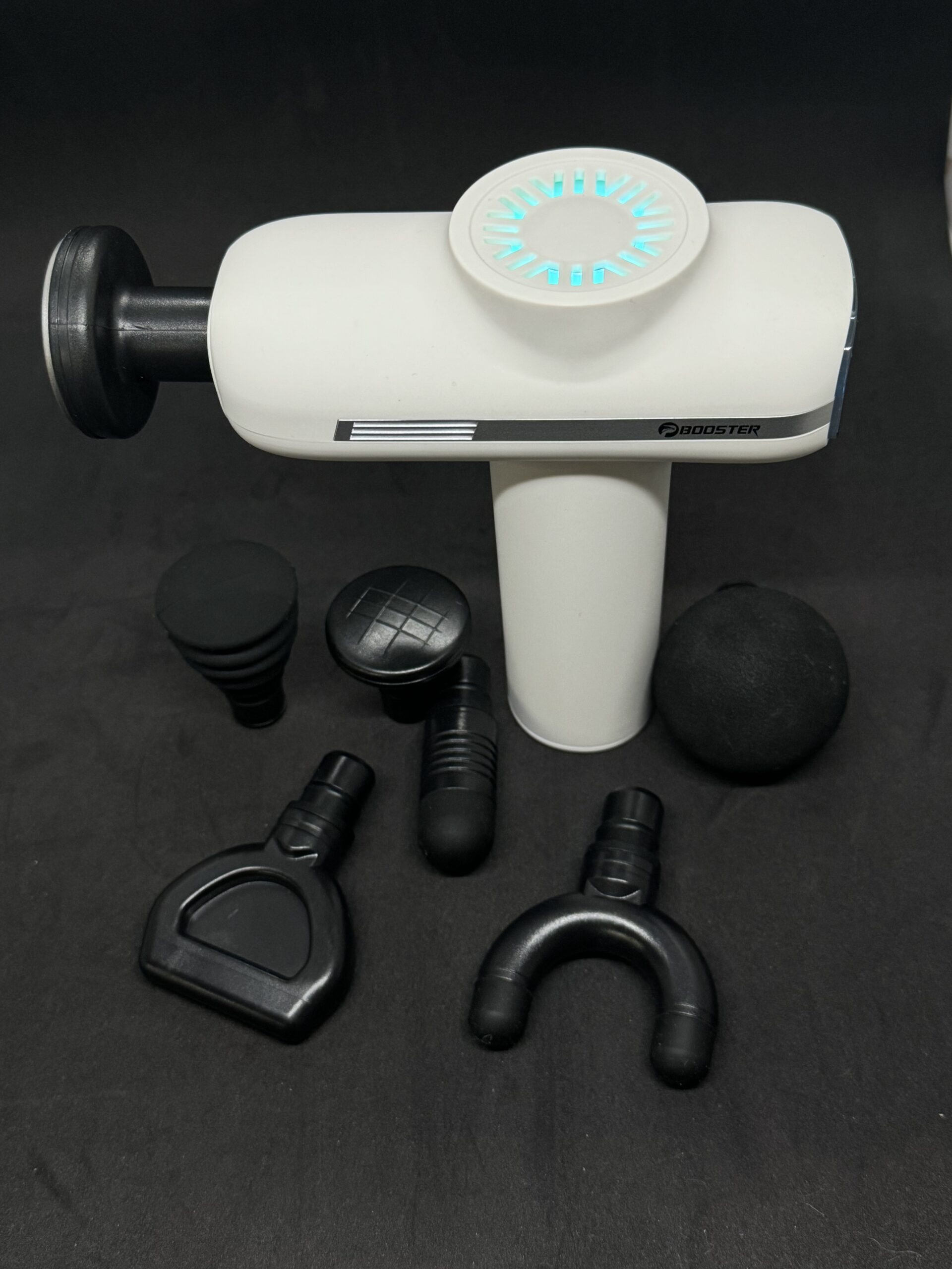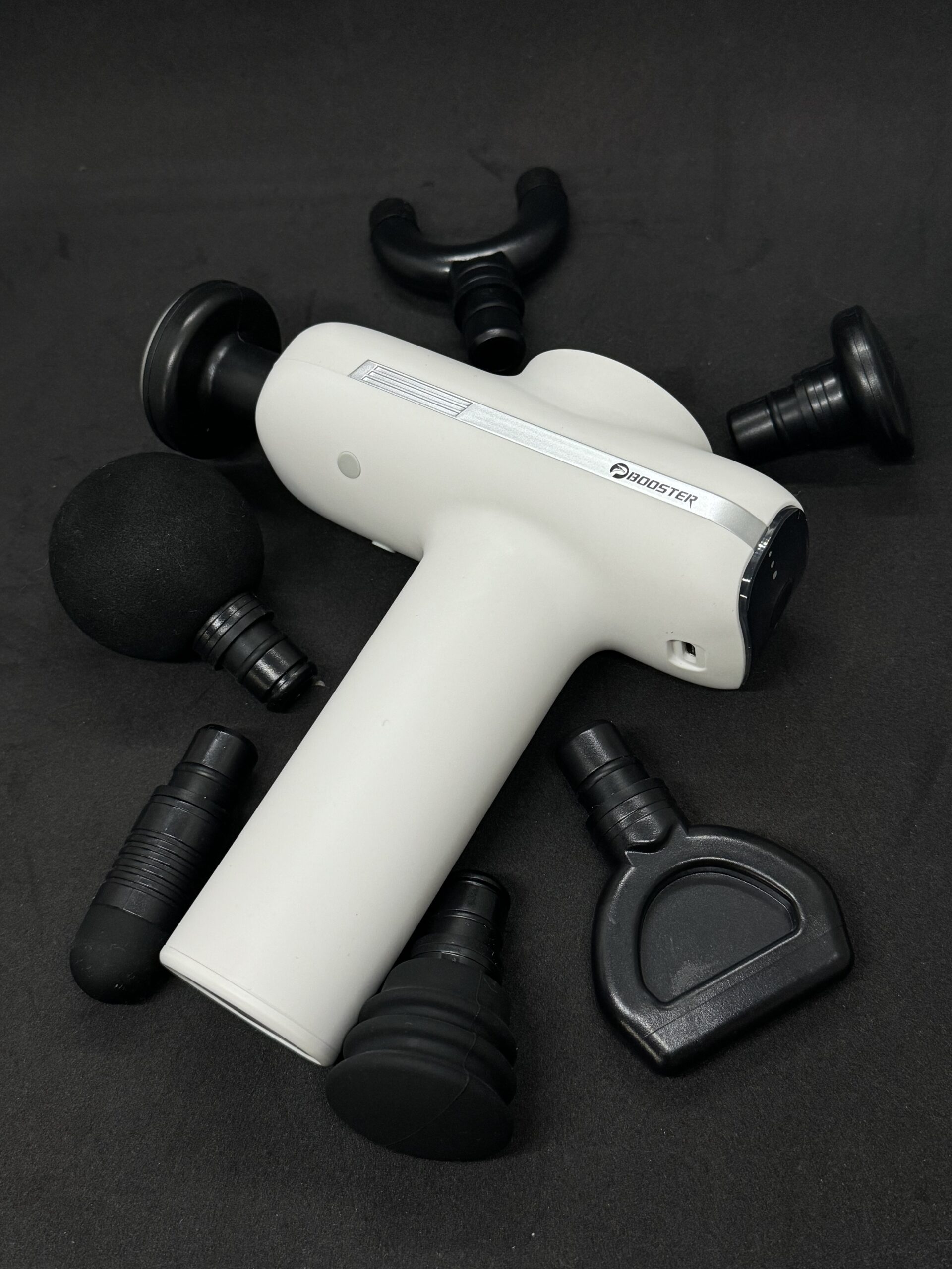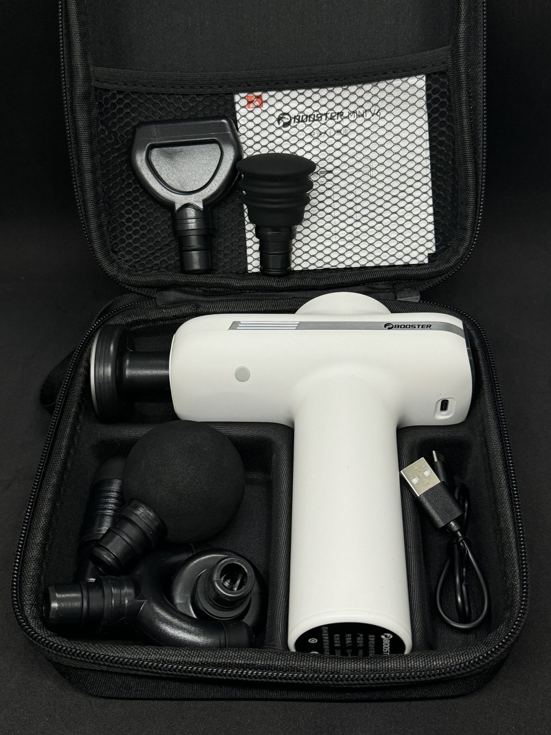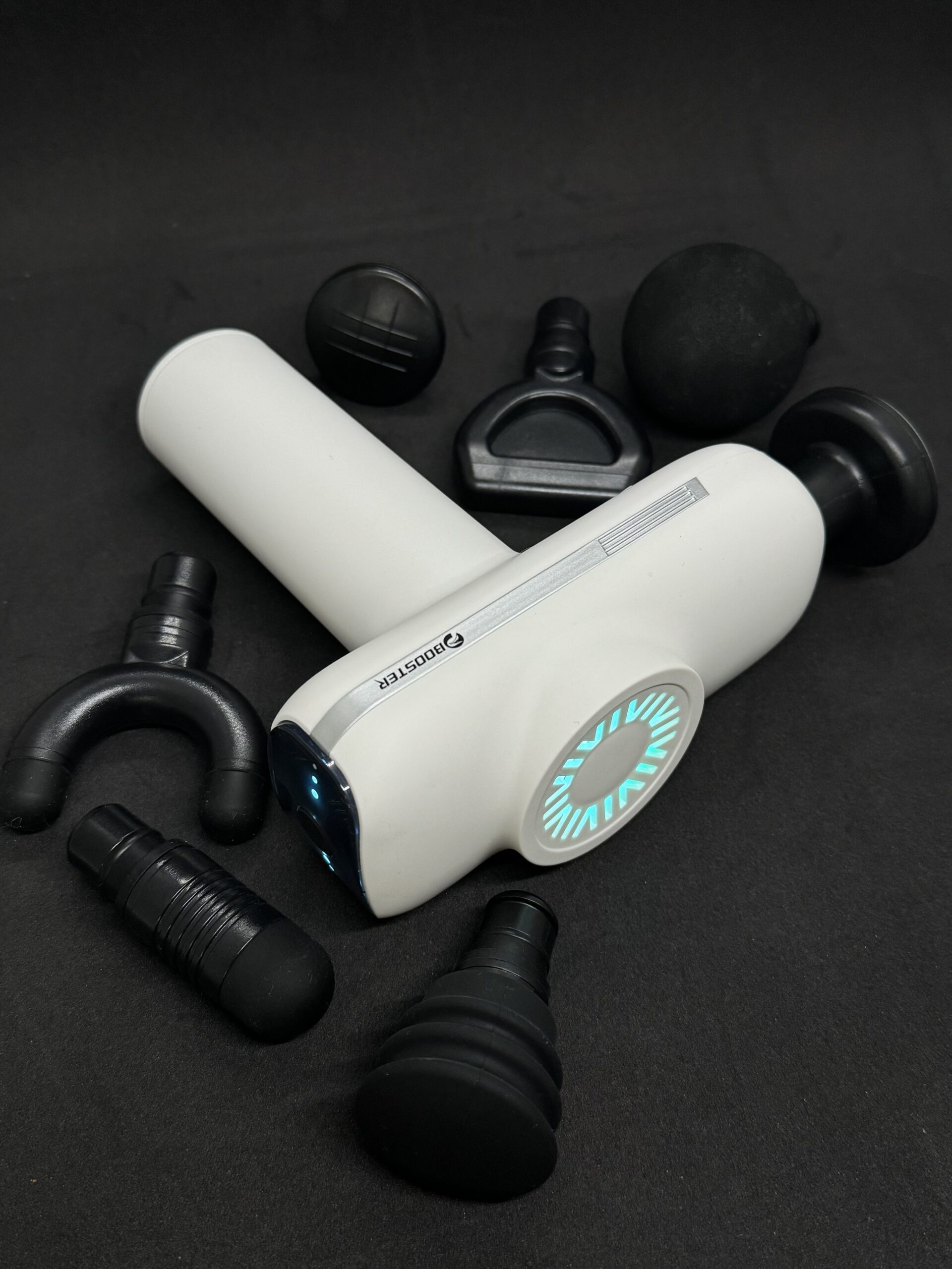 Booster Mini V6 — компактний та потужний масажер для ефективного відновлення м’язів. Завдяки 85 Вт двигуну, 3 рівням інтенсивності та 5 насадкам, він допомагає зняти біль, покращити кровообіг і розслабити м’язи. До 3 годин автономної роботи та швидка зарядка через USB-C. Ідеальний для активних людей і спортсменів.